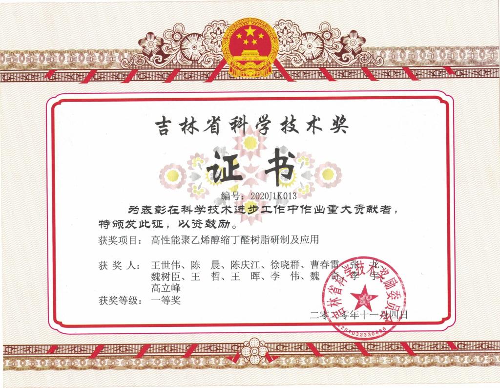 2020年吉林省科技进步一等奖