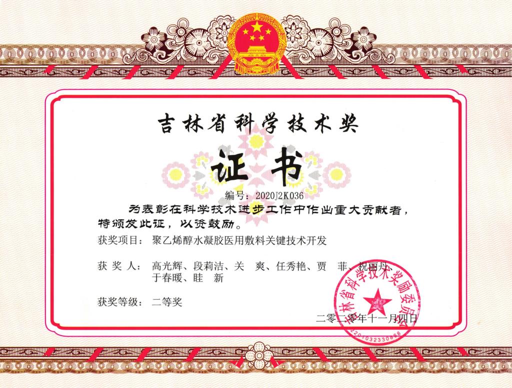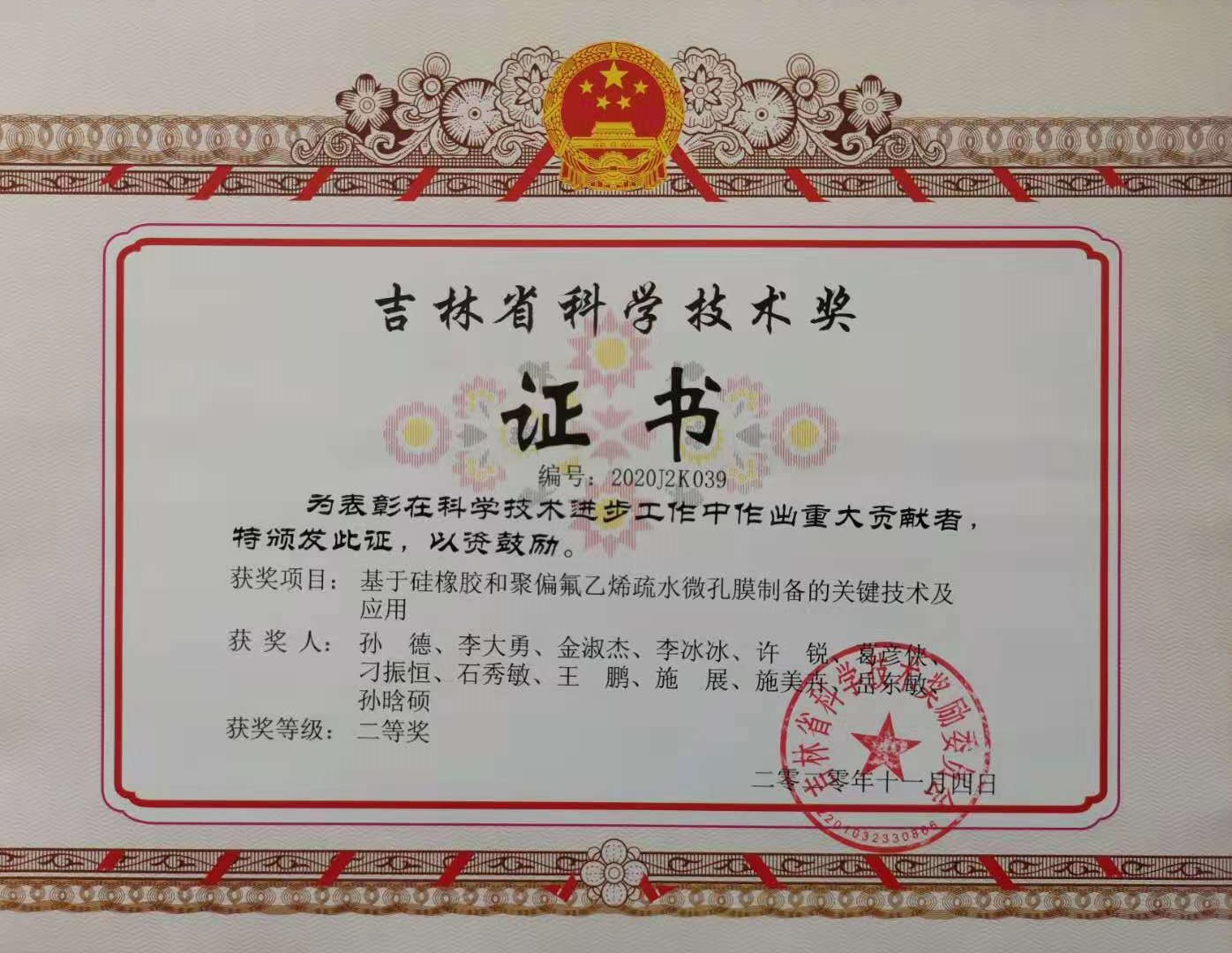 2020年吉林省科技进步二等奖