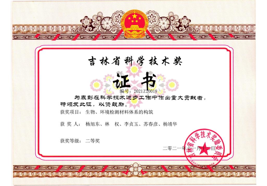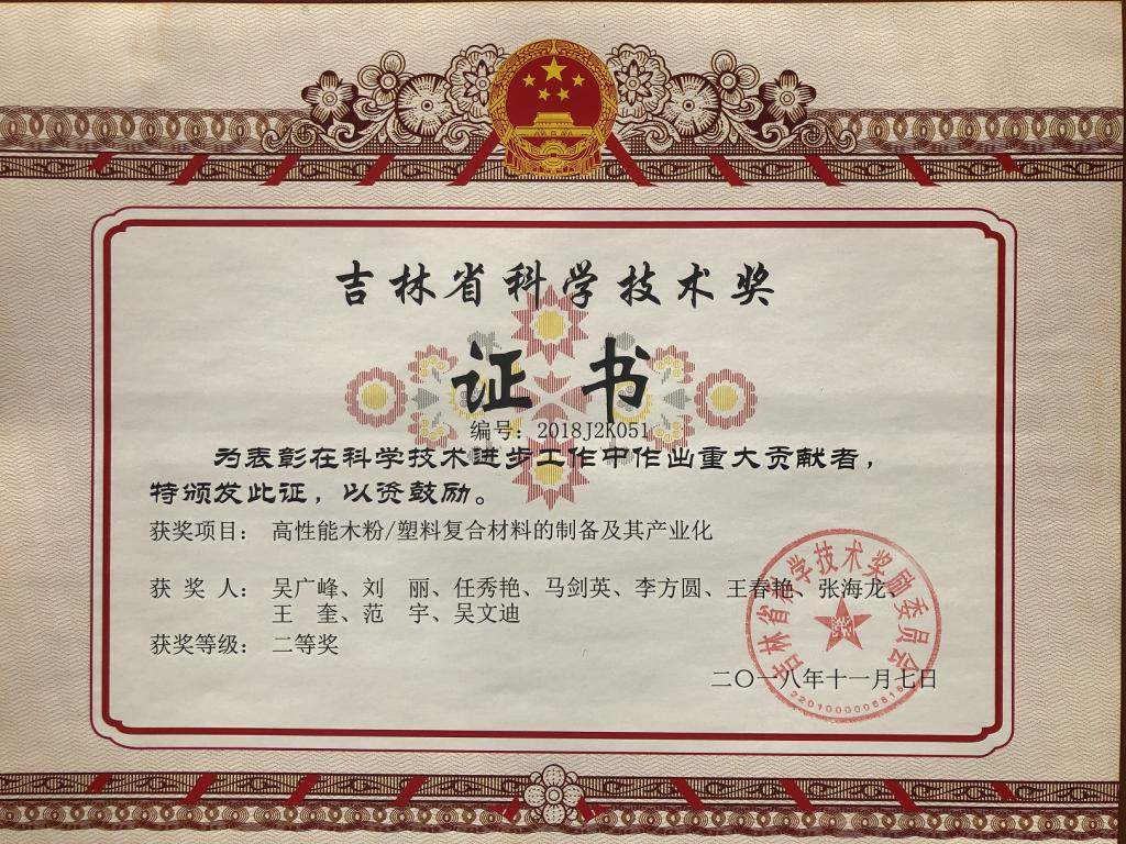 2018年吉林省科技进步二等奖