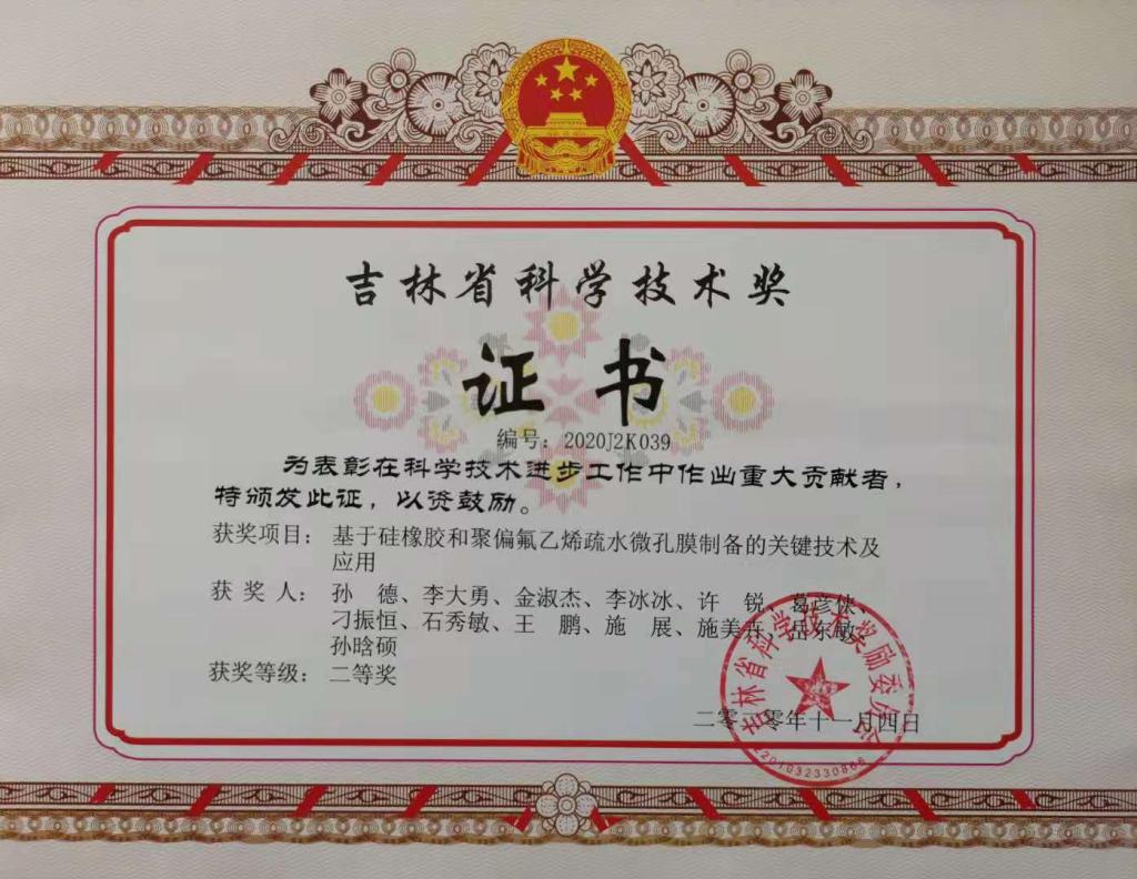 热烈祝贺孙德教授团队获得2020年吉林省科技进步二等奖。