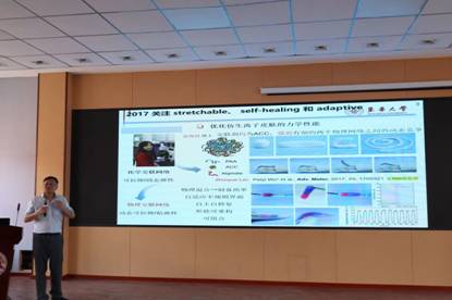 武培怡教授做了题为“智能软材料”的学术报告。介绍了课题组受皮肤结构及其传感原理的启发,结合柔性、可拉伸、可自修复的离子传输材料,发展了一系列可模拟人体皮肤功能的离子皮肤器件。仿生离子皮肤材料成功模拟了人体皮肤的离子感知、可拉伸、弹性、自修复等诸多特性,在人机交互、柔性电子、软体机器人等领域表现出巨大的应用潜力。