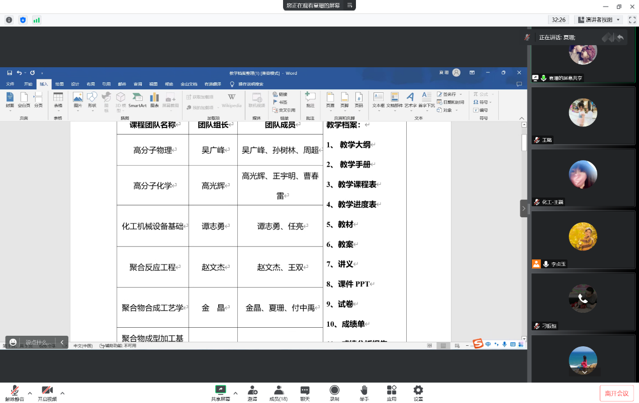汇报会上,化学工程与工艺专业副主任王巍、高分子材料与工程专业副主任夏珊、环境工程专业副主任戴博雅、制药工程专业主任宋晓峰分别介绍了各自专业的教学大纲撰写进展情况。针对各专业教学大纲撰写上面的具体问题,展开了充分的讨论。
