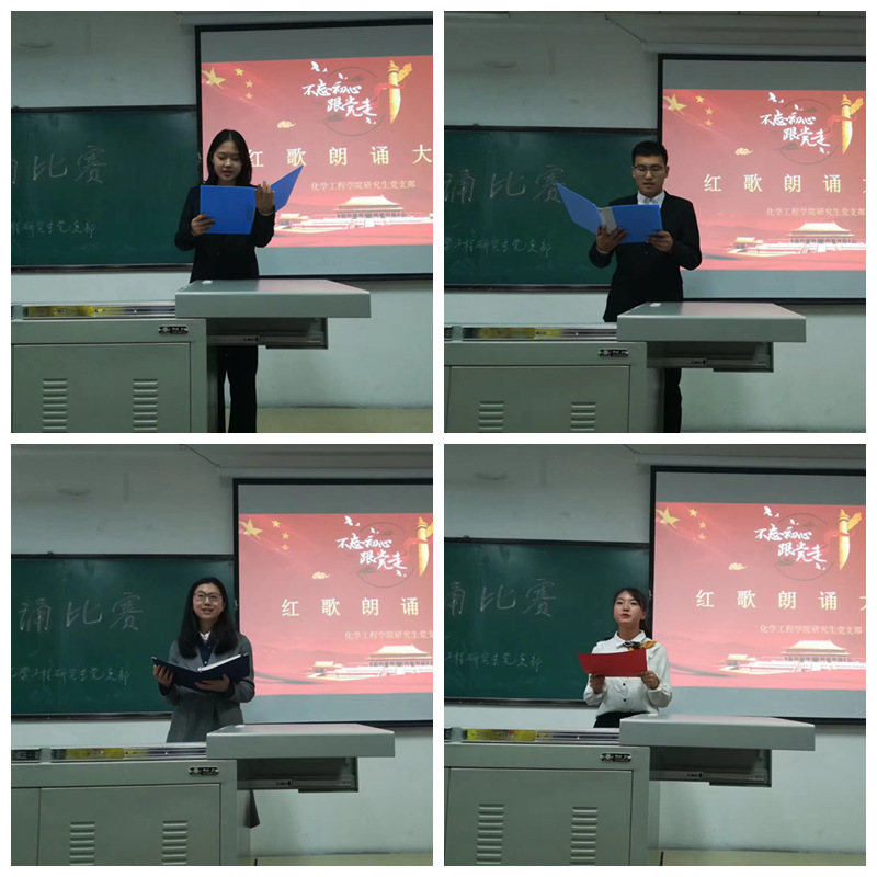为庆祝中华人民共和国成立71周年,弘扬爱国主义精神,在研究生党员、积极分子中广泛开展“四史”教育。研究生党支部6日中午在南湖校区科研楼108教室举办红歌朗诵大赛决赛。学院党委专职组织员肖芳老师、学生党支部书记程晓印老师及研究生党支部全体学生党员、入党积极分子参加了活动。
