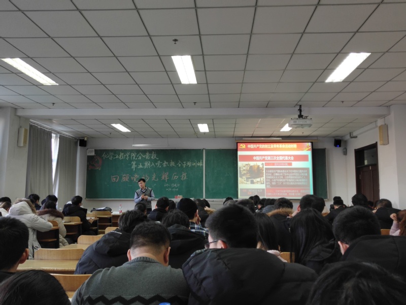 分党校第五期入党积极分子培训班于12月20日在南湖科研楼2309教室开展了“回顾党的光辉历程”专题讲座,讲座由2018级辅导员程晓印老师主讲。