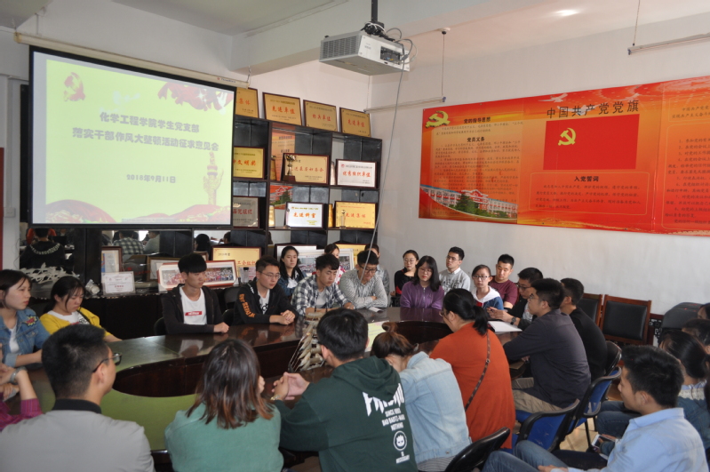 南湖校区化工楼四楼会议室举办落实干部作风大整顿活动征求意见会。此次会议由第二党支部书记肖芳老师主持,学院党委副书记曹永利老师、团委书记杨楠老师、第一党支部书记董广通老师及Porn TV