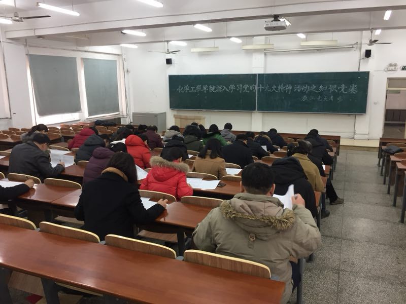 在南湖校区和林园校区同时开展了深入学习党的十九大精神活动之知识竞赛。本次竞赛共设三个开场,分别为教工党员考场,本科生党员考场和研究生党员考场,分别由学院党委书记刘喜明、党委副书记曹永利、辅导员助理赵月监考。