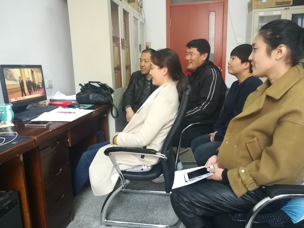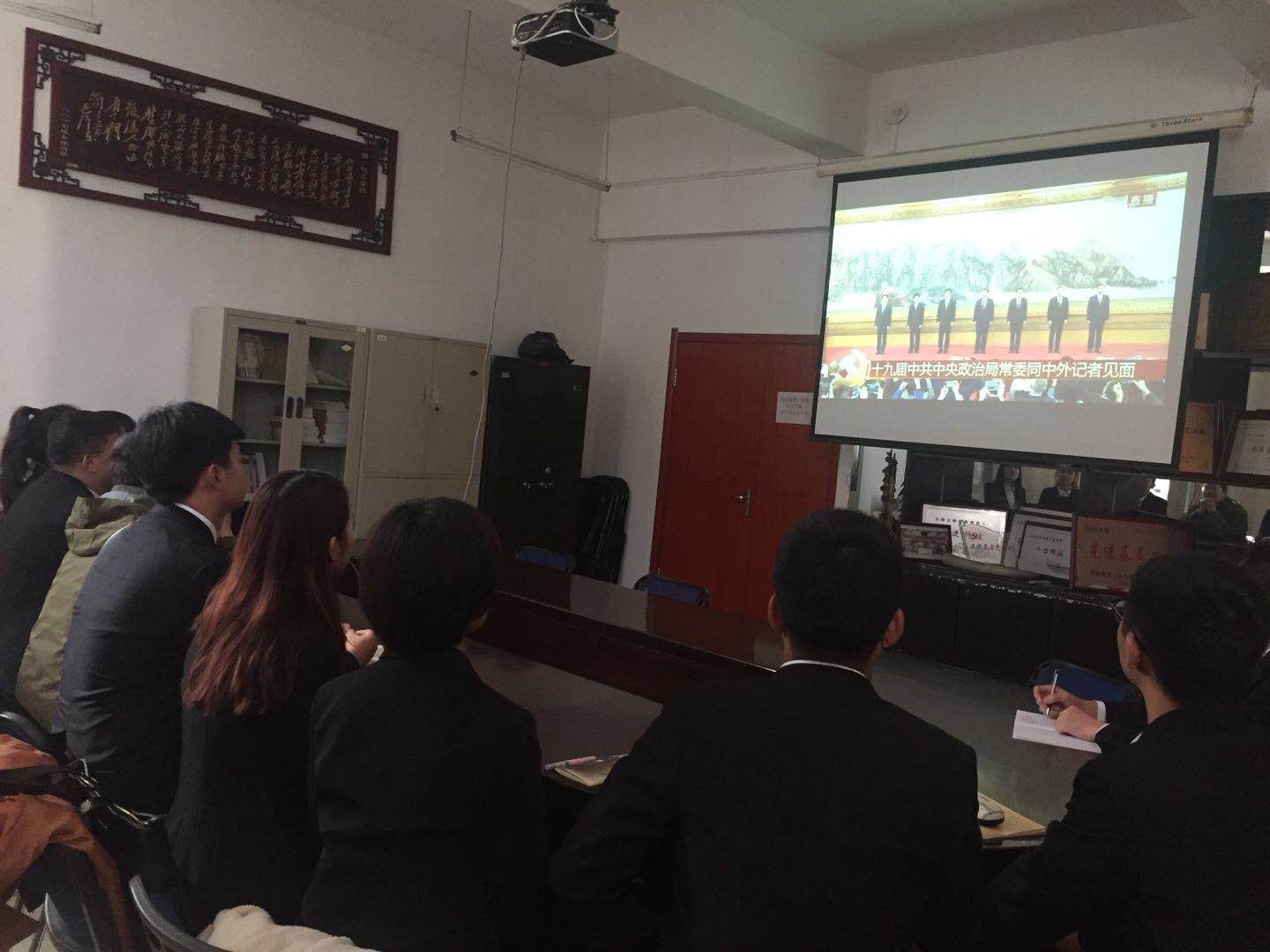 师生积极收看见面会直播,领略新一届中央政治局常委的风采,感受新时代的新布局、新气象、新未来。 (审核人:刘喜明)