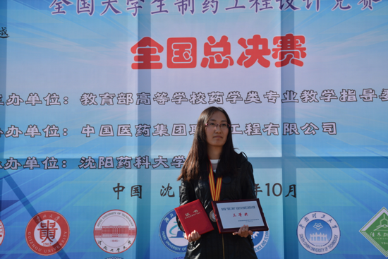 我校选派的两支代表队成功参赛,其中,孙德、李冰冰老师指导的,由刘虹霜、孙华龙、王贺、王岩、李梅、綦春雨同学组成的“龙翔队”最终获得三等奖;王淑娟、程桂茹老师指导的,由张玉秀、刘鑫、邹丽娜、黄秋梅、潘俊鹏、宋中凯同学组成的“信越队” 获得优胜奖。刘虹霜代表学校领奖,制药工程系主任石富强同志作为特邀嘉宾观摩了决赛。