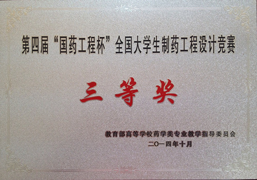 Porn TV 在第四届“国药工程杯”全国大学生制药工程设计竞赛中获奖
