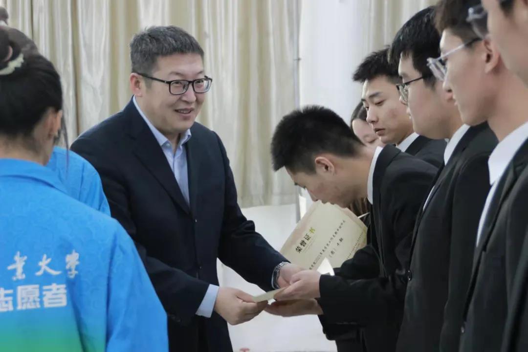吴广峰院长在讲话中指出,2021年是学校“十四五”规划的开局之年,是学校建设吉林省特色高水平应用研究型大学的实施之年,在全院师生的共同努力下,学生工作在思想建设、学风建设、实践育人方面皆取得了优秀的成绩,他对获奖的先进的集体和个人给予祝贺。他希望同学们以党史学习为契机,坚定理想信念;要不断提升学习能力,做新时代的奋斗者;要勇担重担,争做时代青年先锋。他号召全院师生共同努力,为把我校建设成为特色高水平应用研究型大学贡献力量,为学校70年校庆献礼。