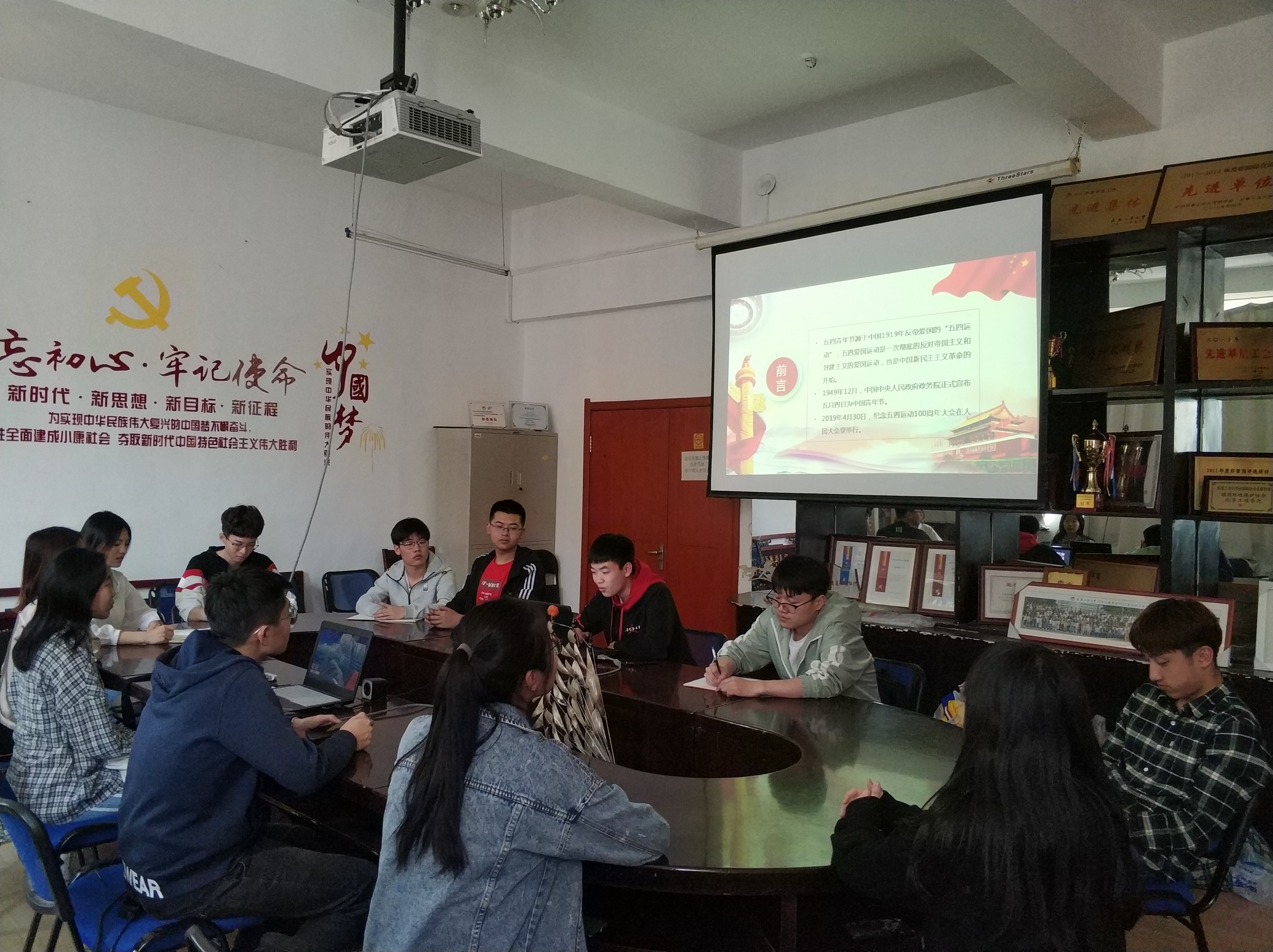 团委、号角青年理论学会于5月8日在化工楼四楼会议室开展了“传承五四精神,争做时代新人”专题学习。学院团委主要学生团干部参加了学习。