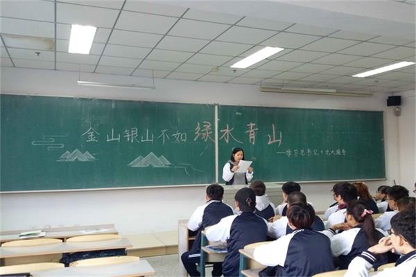 活动中,大家首先共同学习了习近平总书记十九大报告中关于过去五年生态文明建设情况、人与自然和谐共生、加快生态文明体制改革等相关内容。随后,同学们踊跃交流发言,学生代表王芳婷、赵苾艺分享了自己观看党的十九大开幕会上习总书记报告学习的心得体会。