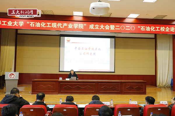 张会轩在致词中指出“石油化工现代产业学院”在未来运行过程中要坚持的基本原则、学校组建现代产业学院的优势和重要意义;李占国介绍了现代产业学院成立的背景、必要性和建设规划。