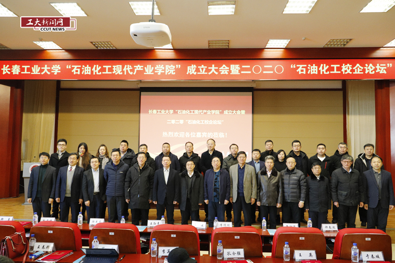 新闻网讯(通讯员孙树林)12月18日学校“石油化工现代产业学院”成立大会暨二零二零“石油化工校企论坛”在南湖校区学术报告厅举行。吉林省教育厅高教处处长宋辉,校长张会轩,副校长李占国出席会议,成立大会由副校长张明耀主持。吉林大学、中科院长春应用化学研究所、中国石油吉林石化公司研究院、吉林石化公司合成树脂厂、辽阳石化公司、大庆石化公司、中国中车长春轨道客车股份有限公司、吉林碳谷碳纤维股份有限公司、吉林精功碳纤维有限公司、吉林国兴复合材料有限公司、中国兵器北方华锦集团有限公司、天津利安隆新材料股份有限公司、双辽昊华化工有限公司、吉林省开顺新材料有限公司、长春吉原生物科技有限公司、吉林华邦新材料科技有限公司、吉林省龙展新材料科技有限公司、吉林中科金盛科技有限公司、吉林伊特胶管有限公司等二十二位专家学者代表出席本次会议。